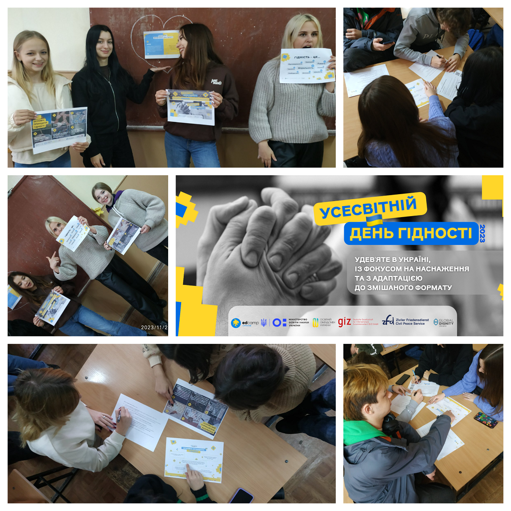 Викладачі Кропивницького аграрного фахового коледжу Вікторія АПАНАСЕНКО та Марина СТРИЖЕУС в групах К231 та М223 провели виховну годину ” Усесвітній день гідності “. В ході заходу ознайомилися з основними складовими та принципами гідності, переглянули відеоматеріали «Звідки черпати наснаження», «Привітання з Днем гідності від учнів і учениць з Великобританії» виконали тестові завдання та розглянули концепцію всесвітнього дня гідності.