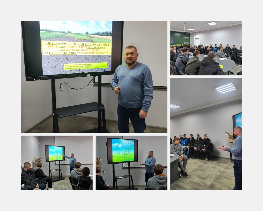 Юрій Васильович поділився зі здобувачами освіти результатами наукових досліджень, висвітлив вплив кліматичних змін на продуктивність культур, а також розкрив практичне значення правильного підбору сівозмін і систем удобрення для збереження родючості ґрунтів у зоні степу. Щиро дякуємо Юрію Васильовичу за змістовну лекцію, цінний досвід та час, який він приділив нашим студентам!