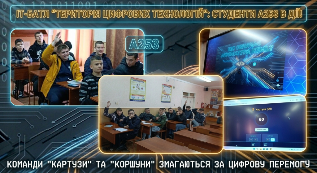 Сьогодні студенти групи А253 перетворили аудиторію на справжню цифрову арену під час ІТ-батлу “Територія цифрових технологій”!