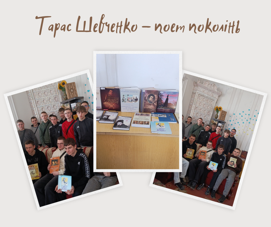 На базі Кіровоградської обласної бібліотеки для юнацтва імені Є. Маланюка викладачка Леся Якубська разом зі здобувачами освіти групи А 252 спеціальності «Агроінженерія» відвідали книжкову виставку, присвячену унікальним творам поета, ознайомилися з дослідженнями творчості митця, спробували відчути геніальне слово Пророка – великого Кобзаря.