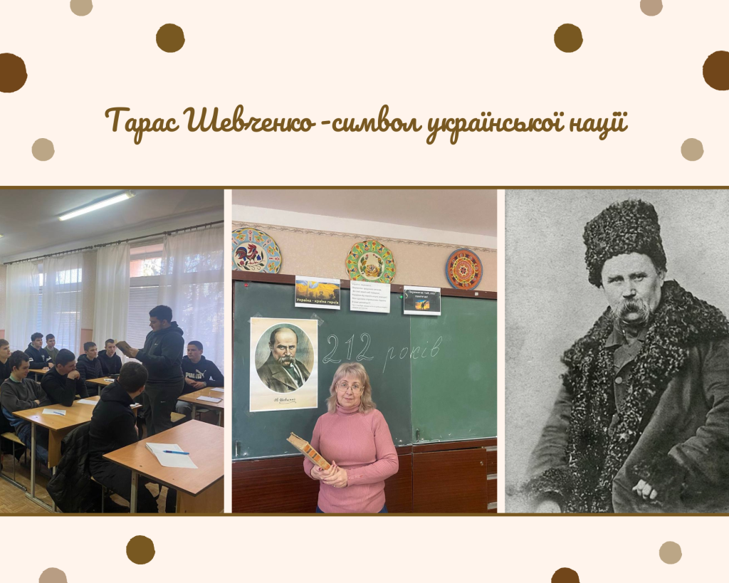 До 212 річниці від Дня народження Т.Г. Шевченка куратор групи А251 Олена Голікова провела тематичну виховну годину на тему: «Тарас Шевченко – символ української нації».